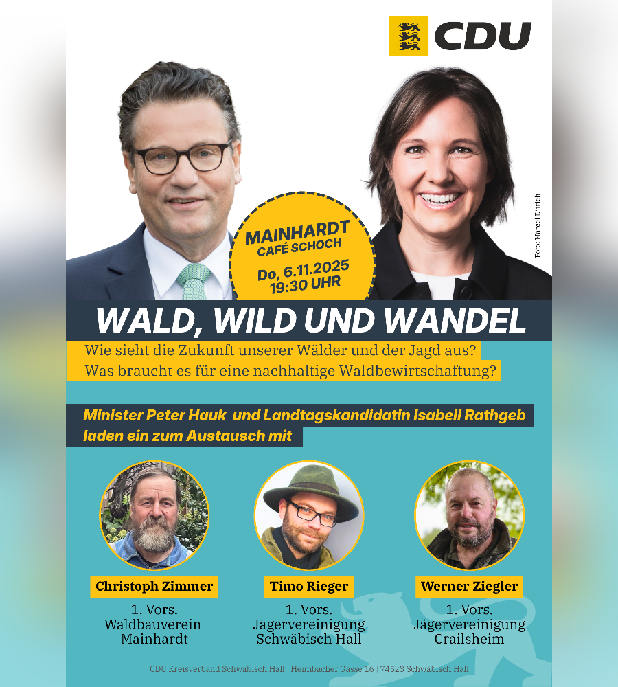 „Wald, Wild und Wandel“ – Veranstaltung mit Minister Peter Hauk MdL und Isabell Rathgeb in Mainhardt