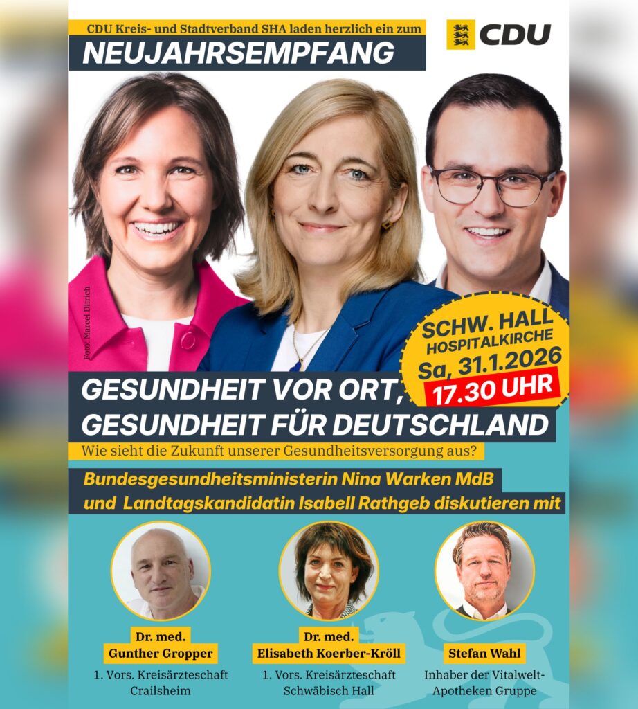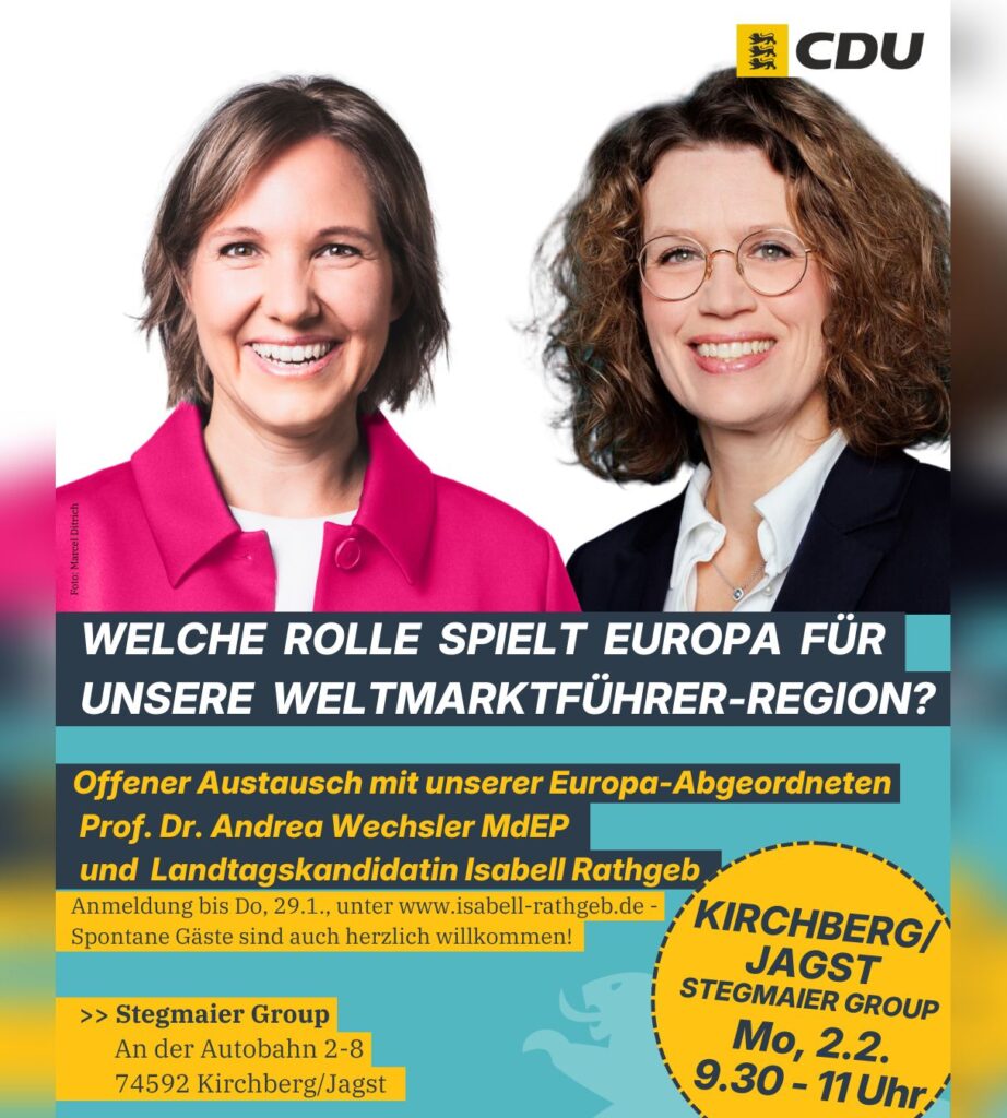 „Schneller Fachkräfte gewinnen – Arbeitsmigration gemeinsam gestalten“ mit Justizministerin Marion Gentges MdL am 25.11.2025 in Crailsheim 13. November 2025 Keine Kommentare Weiterlesen »