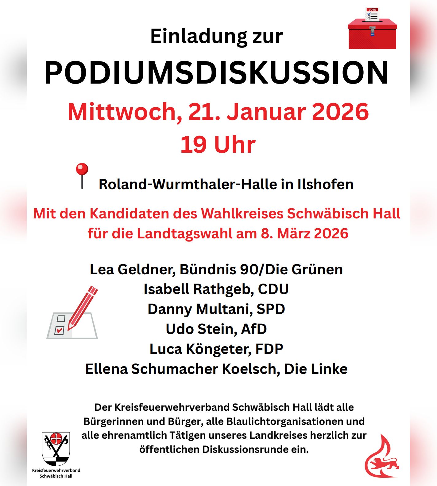 Begrüßung durch den Kreisfeuerwehrverband. Kurze persönliche Vorstellung der Kandidaten der CDU, der Grünen, der SPD, der AfD, der FDP und der Linken. Mit anschließenden Fragen, Rund um die Themen Feuerwehr, […]